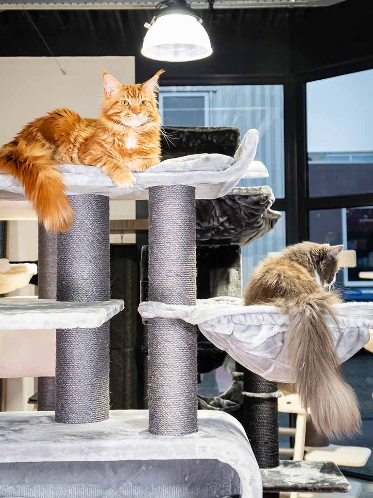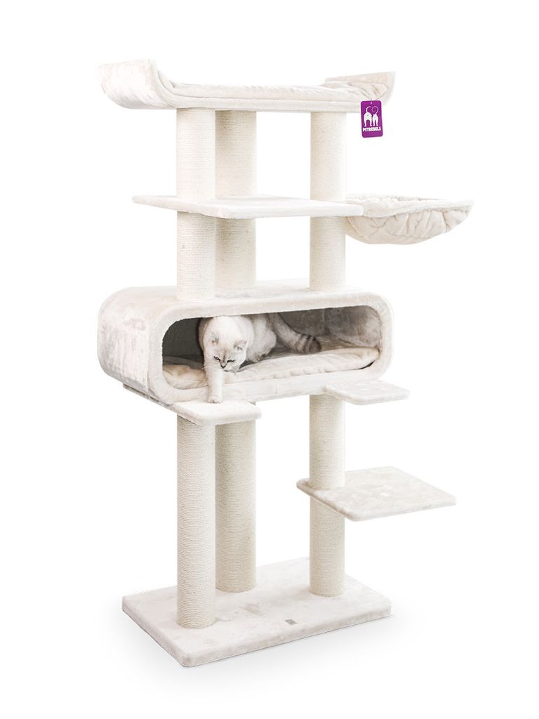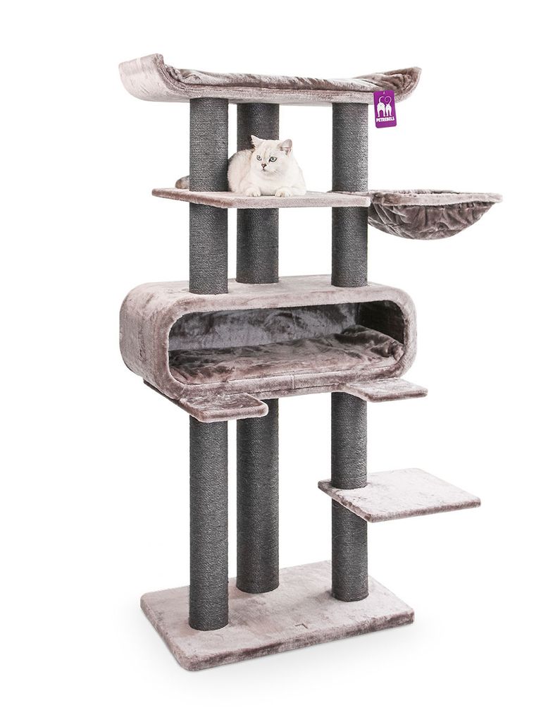 Route 180 är ett rymligt och bekvämt klösträd för dig med katter som gillar att leka och klättra men även en mysig plats att sova på.