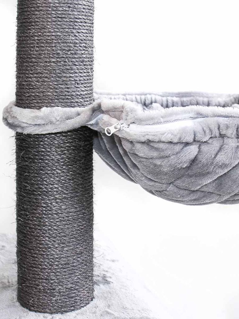 Plysch material med sisal som gör klösträdet mycket hållbart och slitstarkt med en tjock bottenplatta som håller kattmöbeln stadig utan att vingla när dina katter leker som mest.
