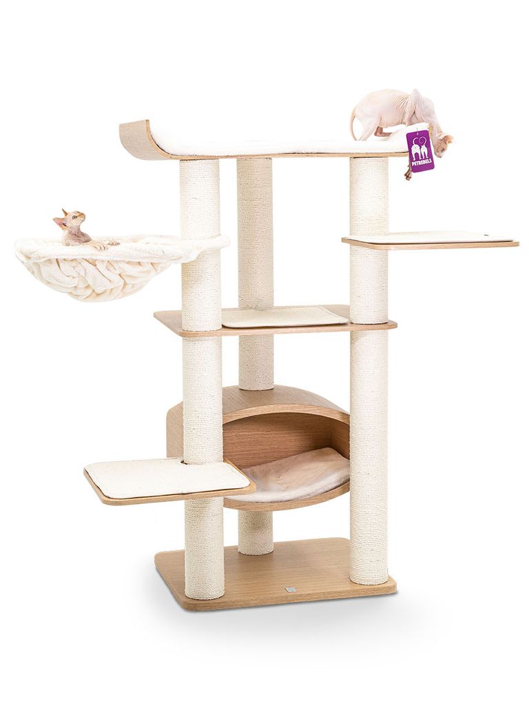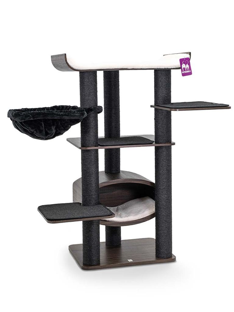 Detta klösträd finns i tre olika färger och ser både elegant och stilrent ut vilket passar var och en hemma hos sig. Dina katter kommer trivas eftersom dom kan leka av sig, klättra och klösa samtidigt som dom har en mysig plats att gå till när dom vill vara ifred och vila .