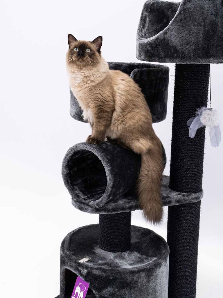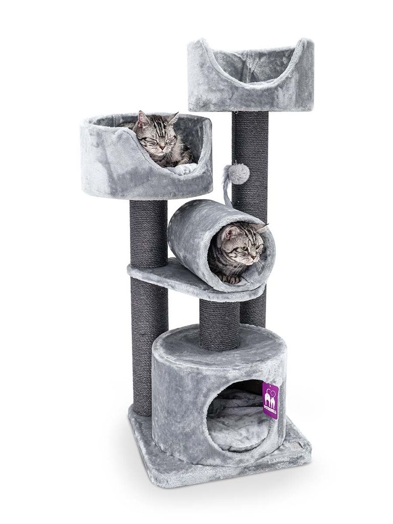 Detta klösträd är fullt utrustad med allt som din katt behöver, en mysig och bekväm viloplats med mjukt material i plysch, klöspelare, och tillgänglig för klättring.