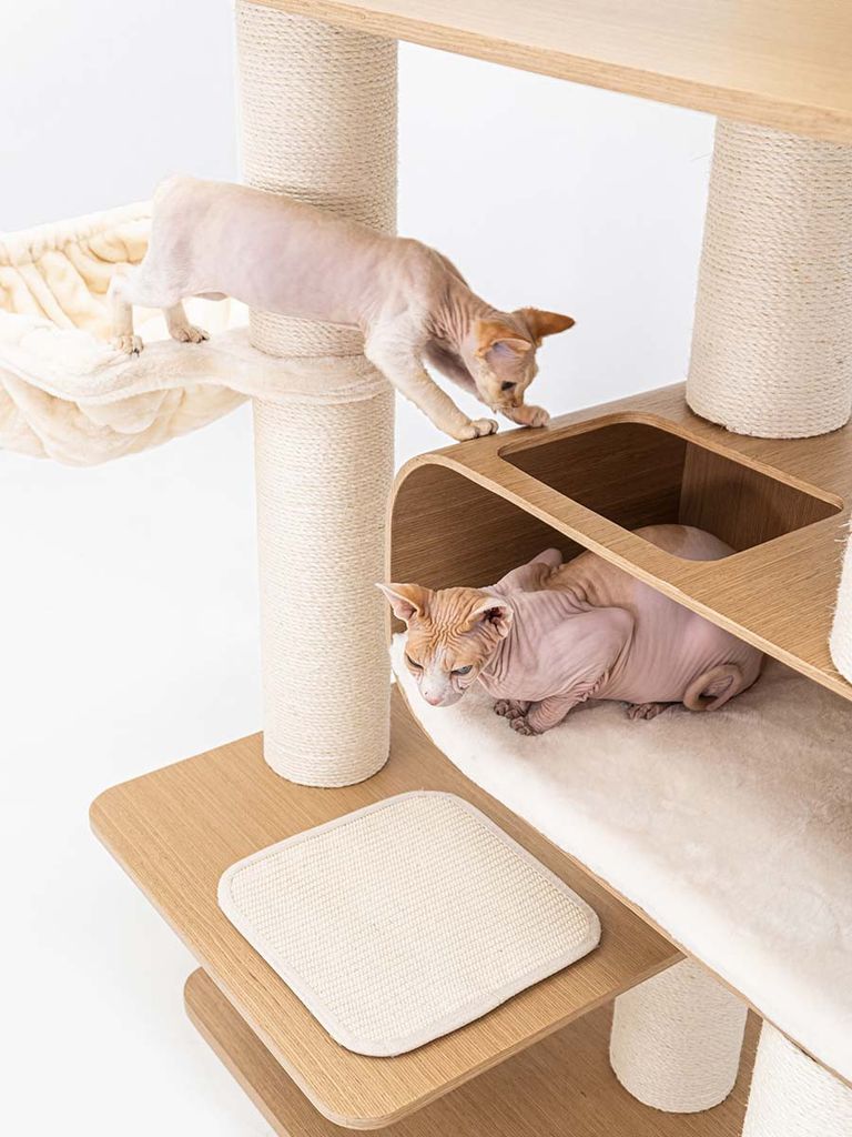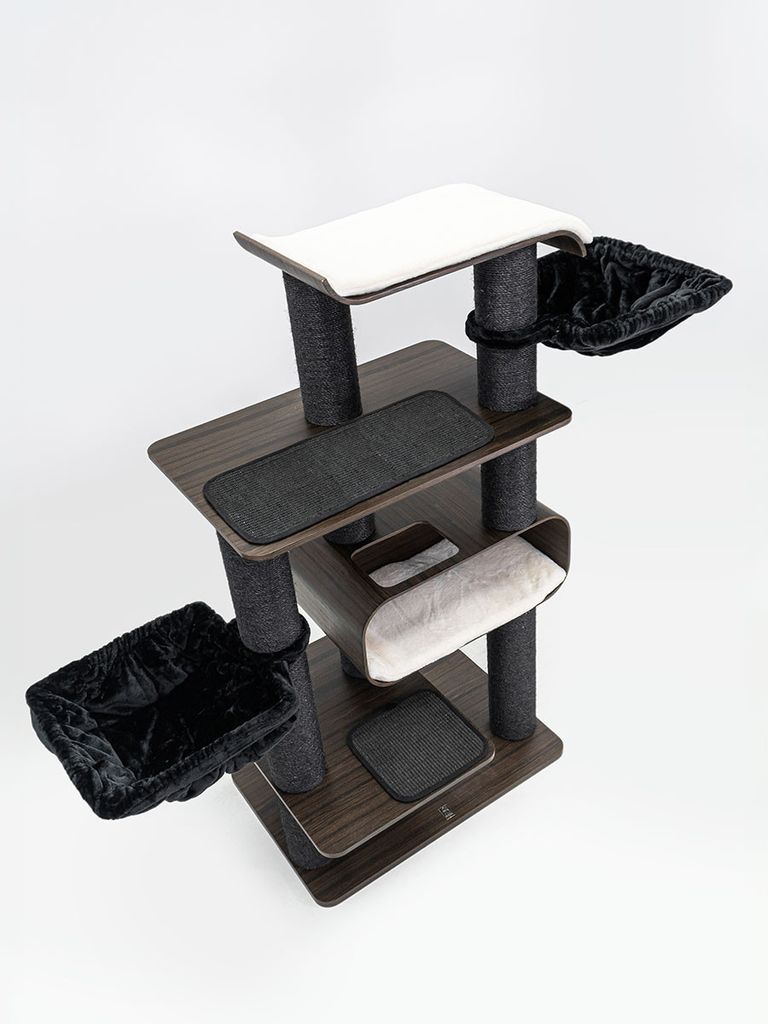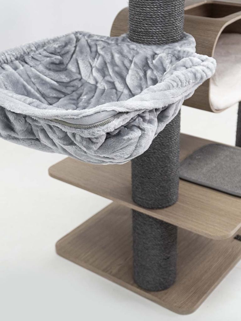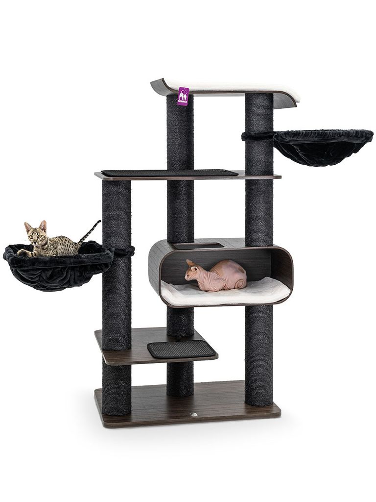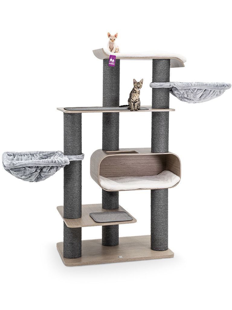 Klösträdet är 173 cm hög vilket passar dig med katter som gillar att ha koll på omgivningen. Från detta klösträd har din katt en bra kontroll runtom och kan därav hålla utkik på det den vill. Dina katter kan även leka, vila och klösa i det här klösträdet vilket kommer göra så att dom trivs och har sina egna ställen för sig själva där ingen kommer och stör. Den är täckt av mjukt material och kommer hålla dina katter varma och bekväma.