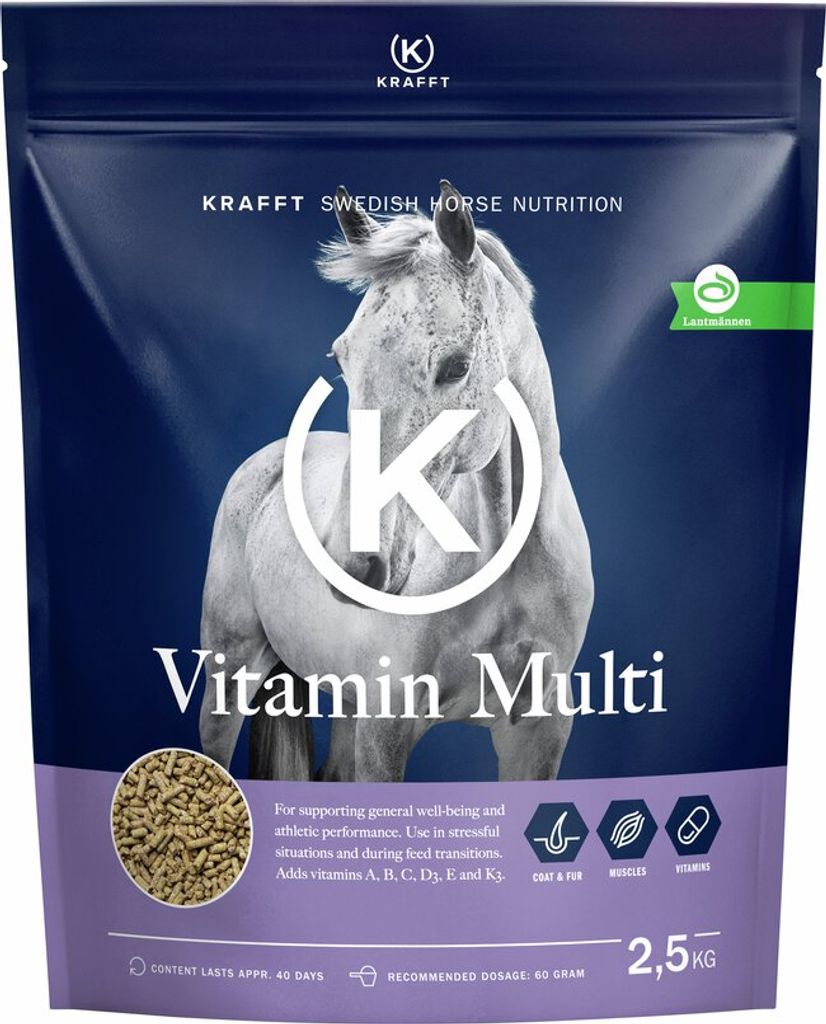 Allsidigt tillskott i koncentrerad form, gynnar hästens allmäntillstånd och prestationsförmåga. Lämpligt till dräktiga ston eller inför betäckning. Används även vid stress som transporter och foderbyte etc. Tillför vitamin A, B, C, D3, E och K3. Innehållet anges per kg. 1 dl väger ca 60 gram.