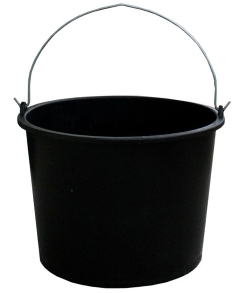 Kraftig hink i svart gjord av plast och med stålgrep. Rejäl och hållbar hink som rymmer 12 liter.