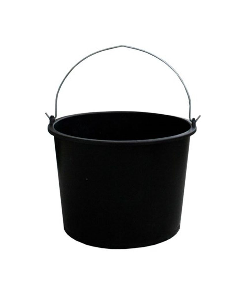 Kraftig hink i svart gjord av plast och med stålgrep. Rejäl och hållbar hink som rymmer 20 liter.