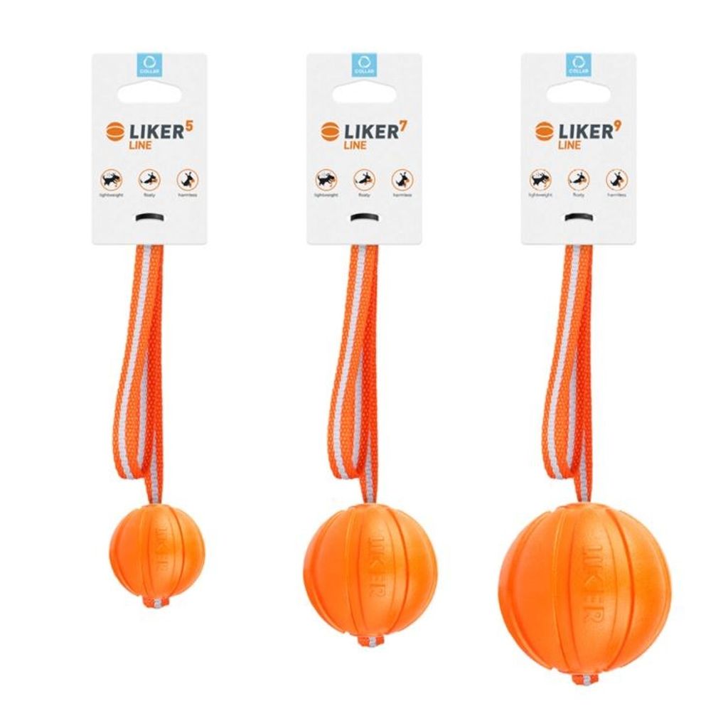Lättviktig boll med bra studs som är fäst i ett tåligt band. Bollen är tillverkad av ett unikt material som är otroligt slittåligt och samtidigt lätt mjukt, vilket gör att hundens tänder sjunker ned lite när den biter tag i bollen, vilket uppskattas hos hundar.