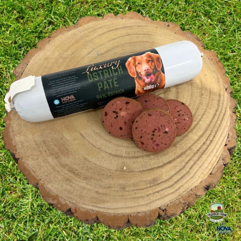 Lyxig paté gjord på smaskig struts. Passar lika bra att sprida på en slickmatta som att toppa maten med eller skära upp i bitar eller skivor och ge som belöningsgodis. Slickmattor ger din hund träning för hjärnan samtidigt som slickandet utsöndrar hormoner i hunden som ger den lugn i sinnet.