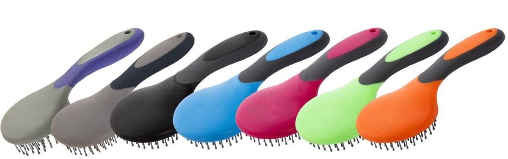 Borste för man och svans med greppvänligt gummerat handtag och rundade piggar.