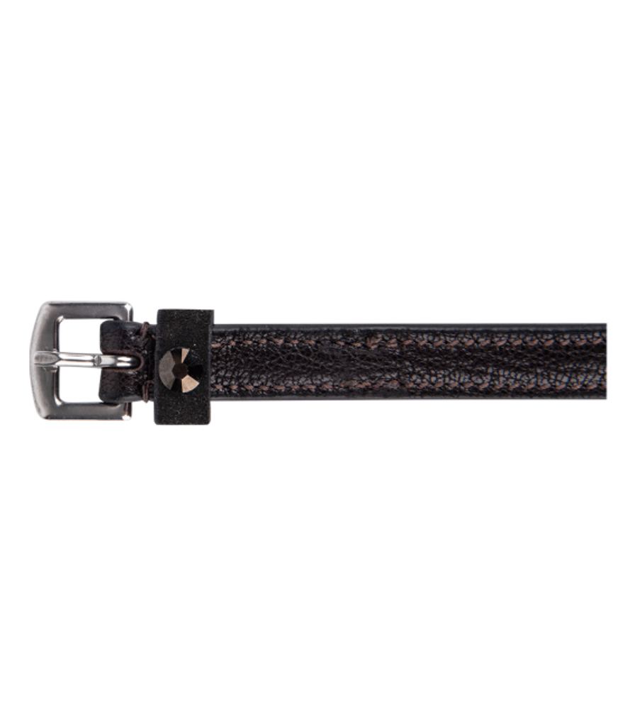 Sporremmar i läder med dekorativ sten.