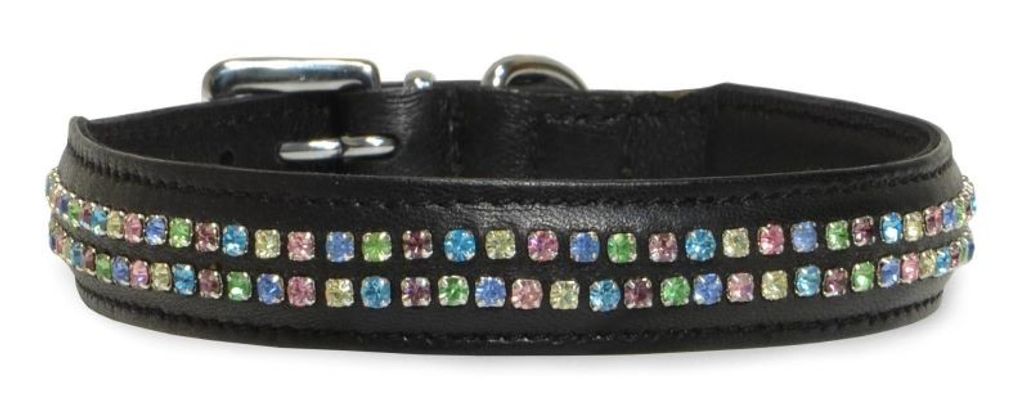 Mjukt halsband i lammskinn med snygga färgglada kristaller i 2 rader. Justerbar passform så du enkelt kan se till att halsbandet sitter perfekt på just din hund.