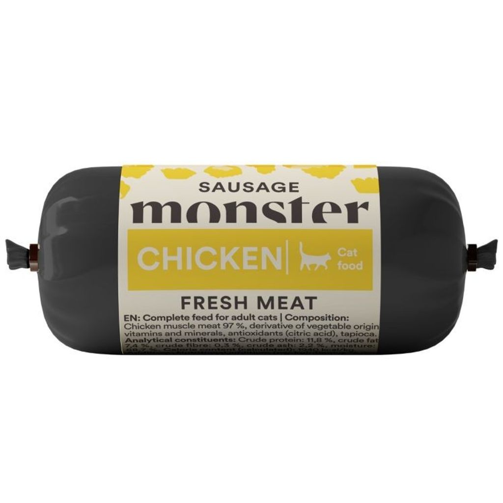 Även den mest kräsna katten har svårt att motstå denna smakrika, spannmålsfria korv från Monster. Monster Cat Sausage Chicken är en köttrik korv där kyckling är både första ingrediens och den enda proteinkällan. Tack vare sin höga smaklighet fungerar den lika bra som ett komplett helfoder som ett extra lyxigt godis vid sidan av. Den mjuka och smidiga konsistensen gör korven enkel att skära i bitar och ta med sig i fickan, eller varför inte riva över kattens vanliga foder för en välsmakande topping.