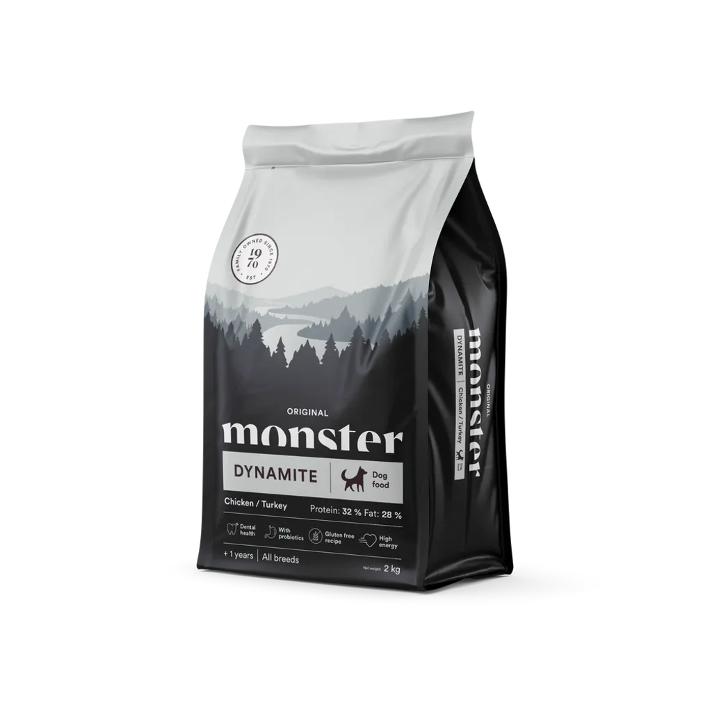Högpresterande hundar behöver få ett foder som verkligen tillgodoser alla deras behov. Monster Dynamite är ett helfoder som ger din hund allt den behöver för att klara även de tuffaste av påfrestningar och ökade energibehov samtidigt som det är skonsamt för magen och hjälper din hund att uppnå nya nivåer.