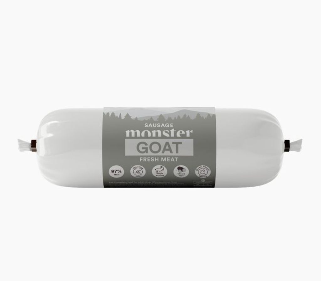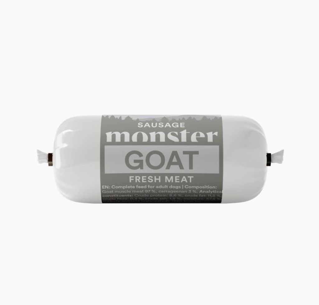 Även den mest kräsna hunden har svårt att motstå denna smakrika, spannmålsfria korv från Monster. Monster Sausage Goat är en köttrik korv där get är både första ingrediens och den enda proteinkällan. Tack vare sin höga smaklighet fungerar den lika bra som ett komplett helfoder som ett extra lyxigt godis vid sidan av. Den mjuka och smidiga konsistensen gör korven enkel att skära i bitar och ta med sig i fickan, eller varför inte riva över hundens vanliga foder för en välsmakande topping.