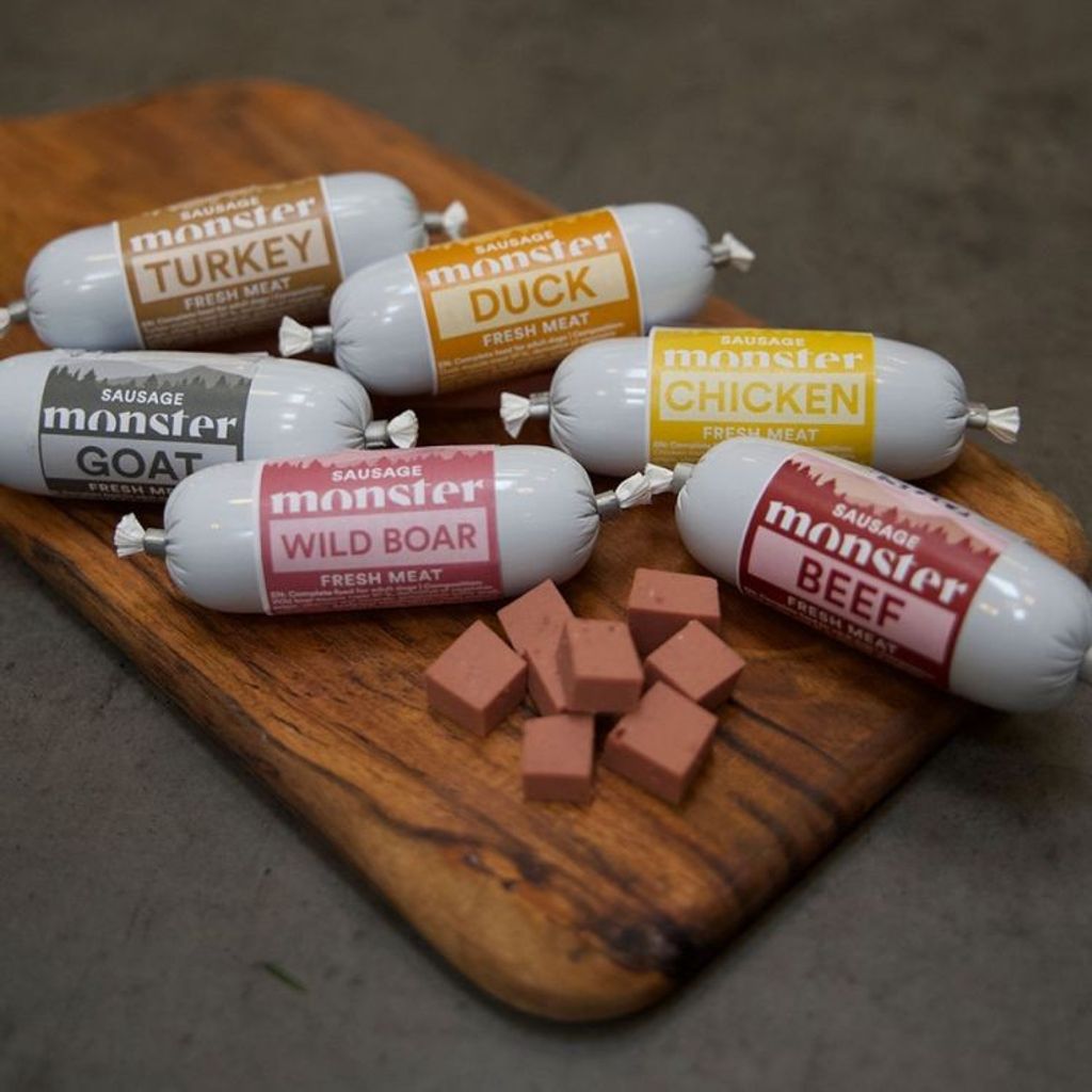 Även den mest kräsna hunden har svårt att motstå denna smakrika, spannmålsfria korv från Monster.