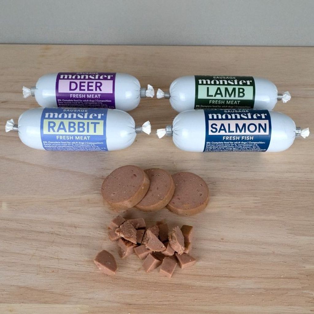 Även den mest kräsna hunden har svårt att motstå denna smakrika, spannmålsfria korv från Monster.