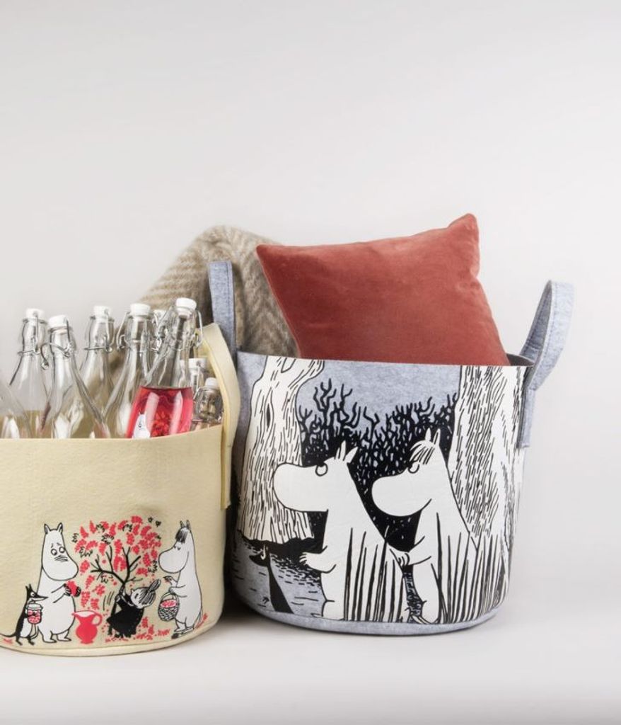 Förvaringskorg med vackert Mumin-tryck. Den härliga färgen och det otroligt fina trycket gör att den verkligen passar in i alla hem.