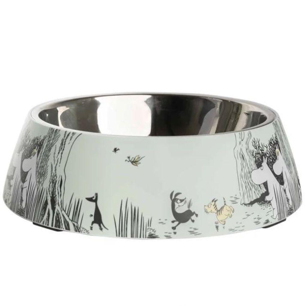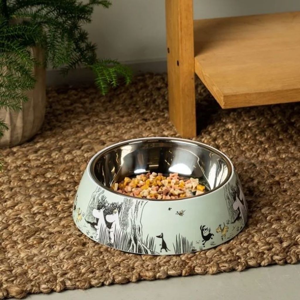 Förgyll ditt husdjurs matplats med en fin Muminskål i en härlig grön pastellfärg.