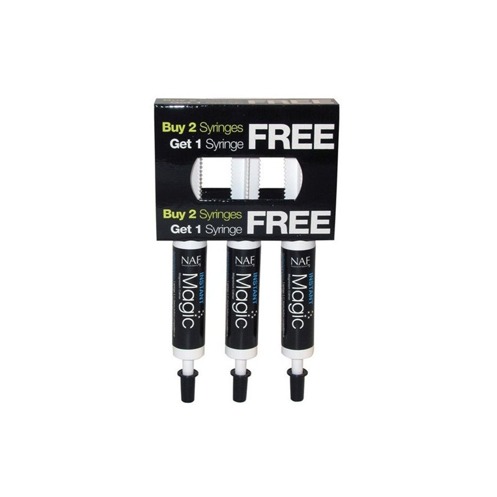 Instant Magic använder biotillgängligt magnesium kombinerat med en snabbverkande örtbas som ger omedelbar, lugnande effekt. Instant Magic rekommenderas till hästar som kortsiktigt behöver ett omedelbart lugnande medel inför potentiellt stressande situationer. Detta kan omfatta t ex: tävling, klippning, resande eller ett besök av hovslagare eller tandläkare. Instant Magic kan även användas för att utöka den lugnande effekten av dagligen utfodrat tillskott av Magic pulver/flytande, när det behövs. OBS: NAF är nöjda med att kunna bekräfta att Instant Magic inte strider mot FEIs regler och STCs regler och är säkert att använda till alla hästar i samband med tävling.
