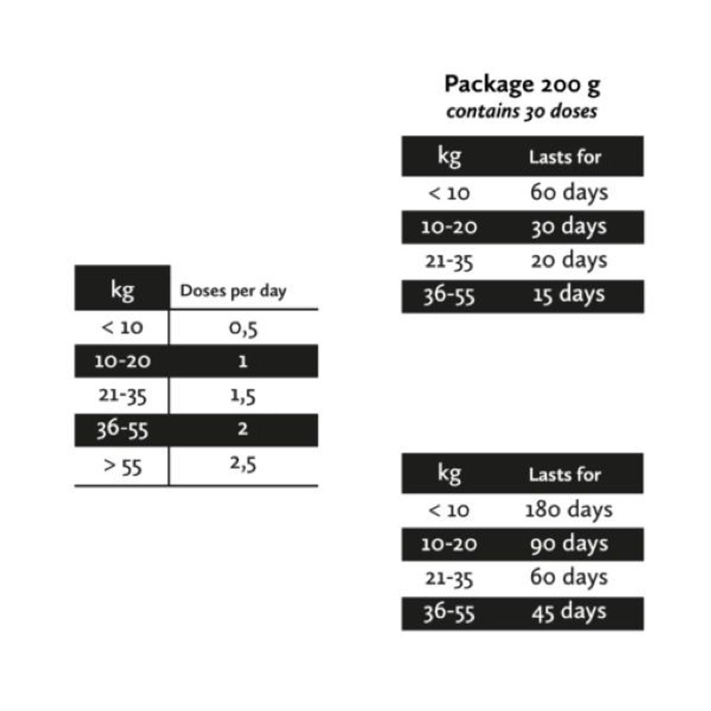 Ge ditt djur pastan varje dag för maximal effekt. Passar lika bra att använda i förebyggande syften som vid komplettering för djur som har artros eller smärta i leder och/eller höfter.