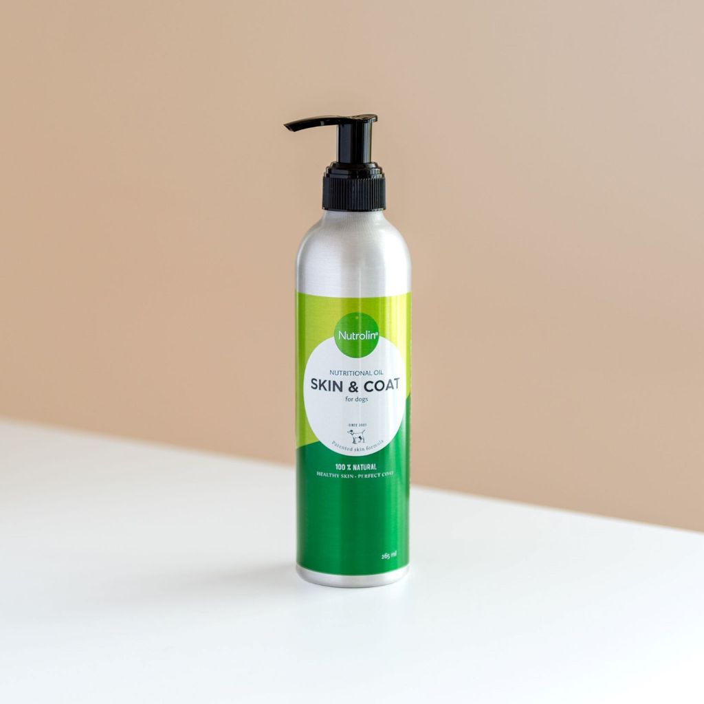 Essentiella fettsyror, speciellt omega-6 linolsyra, behövs för att upprätthålla hudens naturliga skyddslager, dvs. hudens barriärfunktion. En barriärfunktion som fungerar dåligt orsakar torr hud och utsätter hunden för hudproblem. Nutrolin® SKIN & COAT innehåller fettsyror som stödjer linolsyrans effekt: alfa-linolensyra, gamma-linolensyra (GLA) och stearidonsyra (SDA) samt naturlig E-vitamin. SKIN & COAT-näringsoljans sammansättning är patenterad i flera europeiska länder och i USA.