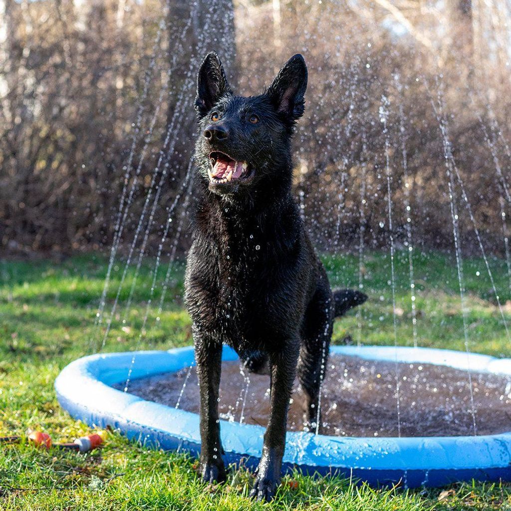 Ozami Dog Splash Pool är en vattenfylld sprinklerpool med en diameter på 150 cm, vilket ger tillräckligt med utrymme för hundar av olika raser och ger även barnen möjlighet att njuta av roliga plaskögonblick tillsammans med hundarna. Det är det perfekta sättet att hålla sig sval under de varma sommarmånaderna!