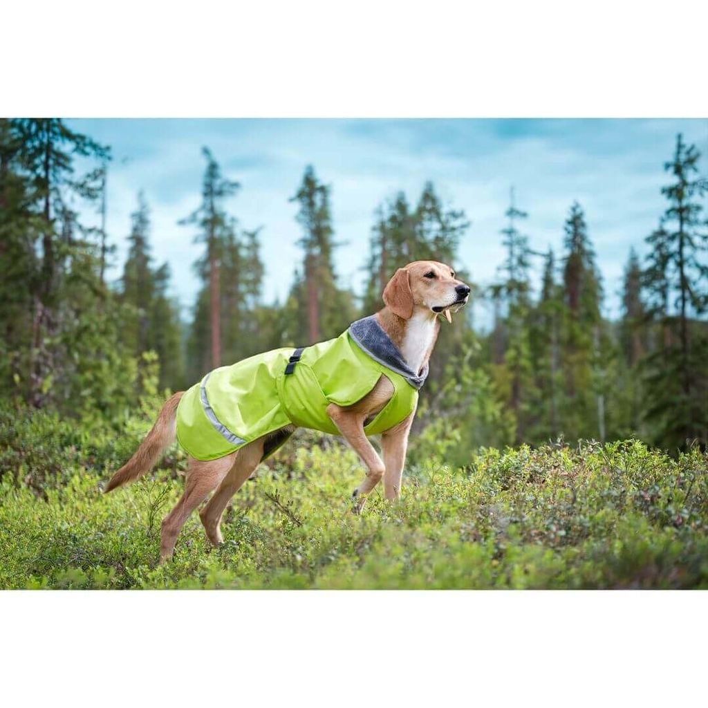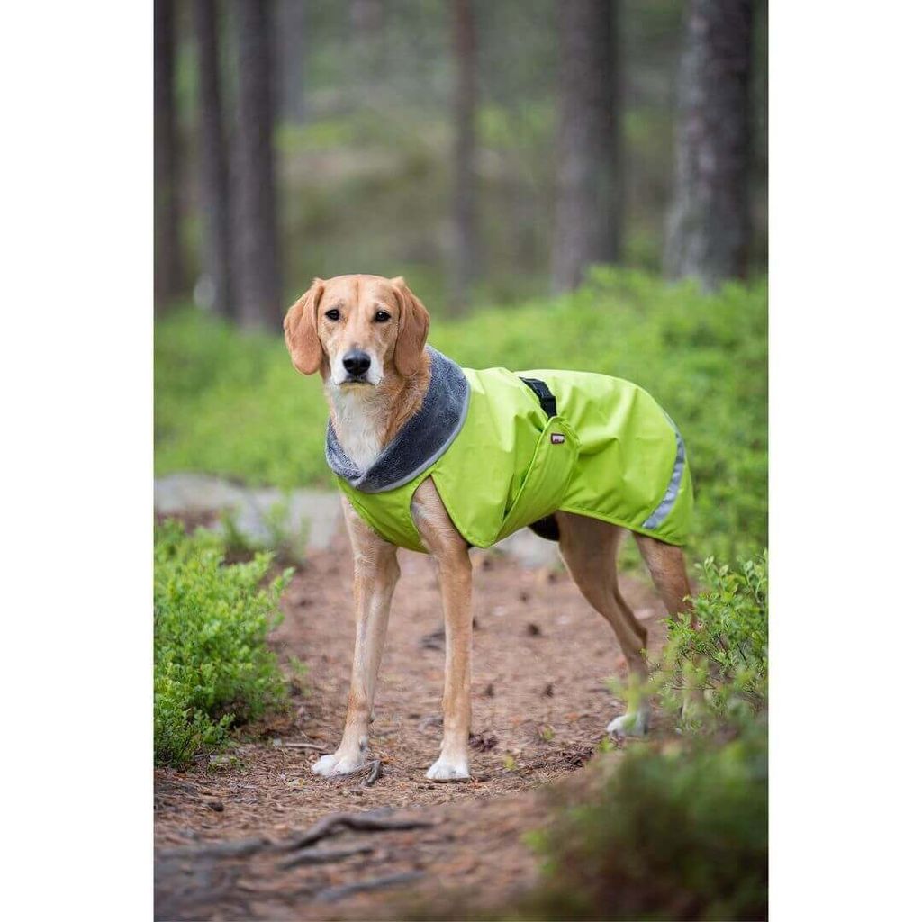 Kragen som sträcker sig långt upp över nacken gör att din hund blir ännu mer skyddad från vid och regn, samtidigt som den har maximal rörelsefrihet. Öppning för koppel i nacken.