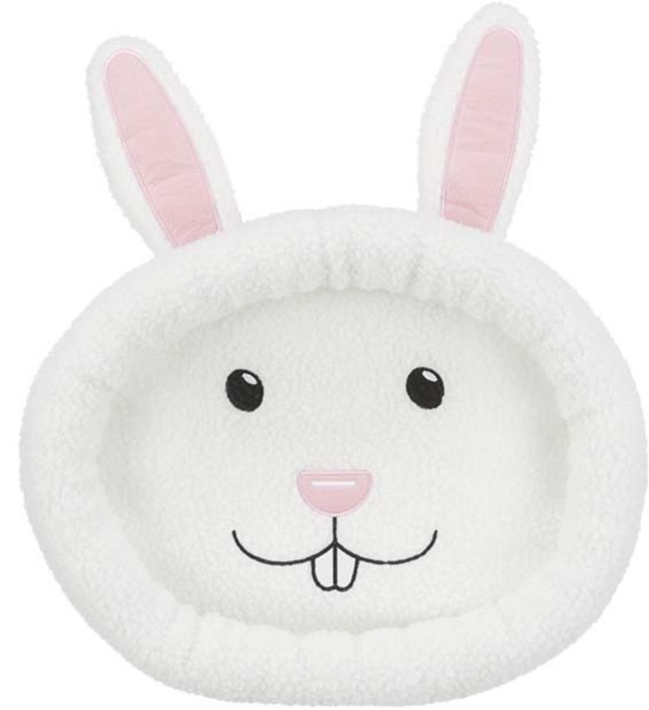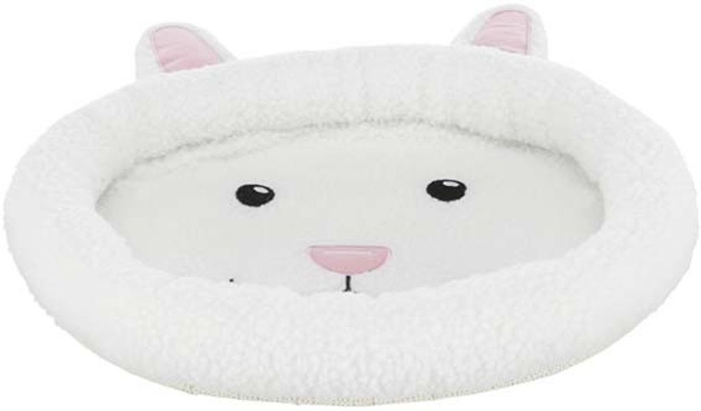 Beskrivning av Rabbit face cuddly bädd, oval, 40x33 cm, ullvit