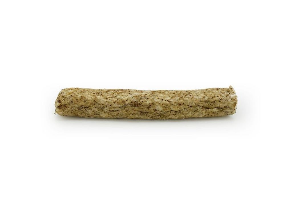 För en stor hund passar denna tuggis perfekt som ett smaskigt mellanmål, och för mindre hundar eller hundar som inte har lika starka käkar (såsom valpar, seniorer och hundar med ont i munnen) räcker det längre.