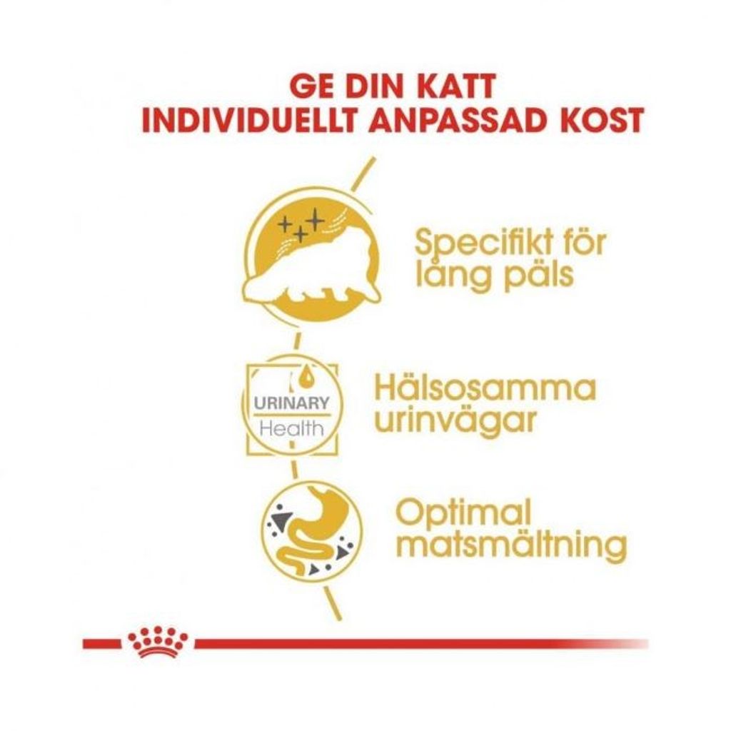 Då Perser har den både längsta och mest täta pälsen av alla kattraser behöver den ett foder som främjar dess päls och hud. Detta foder innehåller noggrant utvalda ingredienser och en balanserad nivå av mineraler och vitaminer för att ge din katt mjuk och len päls samt hälsosam hud. Maten främjar även matsmältningen med en mängd mycket smältbara proteiner och en speciell blandning av kostfibrer.
