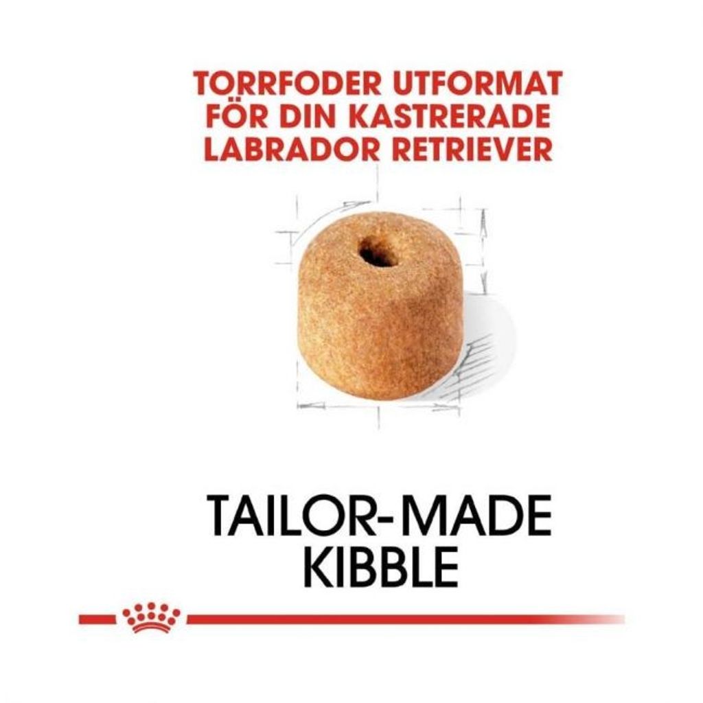Labrador Retriever är känd för sin tendens att gå upp i vikt, likaså kastrerade hundar. Denna formel hjälper till att upprätthålla Labrador Retrievers idealvikt tack vare ett anpassat kaloriinnehåll. Denna specifika formel hjälper till att stödja friska ben och leder och upprätthålla idealvikt. Det innehåller också L-karnitin, en aminosyra som spelar en viktig roll när fett används för produktion av energi i celler.