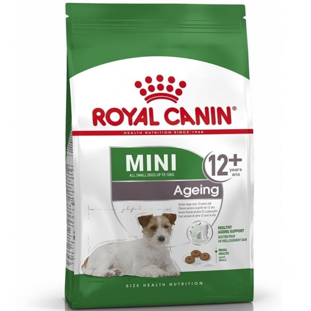 Royal Canin Mini Ageing +12 är ett hundfoder speciellt anpassat för äldre hundar (över 12 år) som väger under 10 kg. Royal Canin Mini Ageing +12 framställs av proteiner av hög kvalitet, vilket tillsammans med tillskott av bland annat omega 3 och omega 6 hjälper med äldre hunden att bibehålla sin vackra päls. Hundfodrets bitar innehåller ämnen som hjälper till att motverka uppkomsten av tandsten, och sammansättningen gör bitarna lätta att blöta upp för att tilltala äldre hundar med sviktande aptit. Royal Canin Mini Ageing +12 innehåller också en anpassad nivå av fosfor, vilket stödjer den äldre hundens njurfunktion.