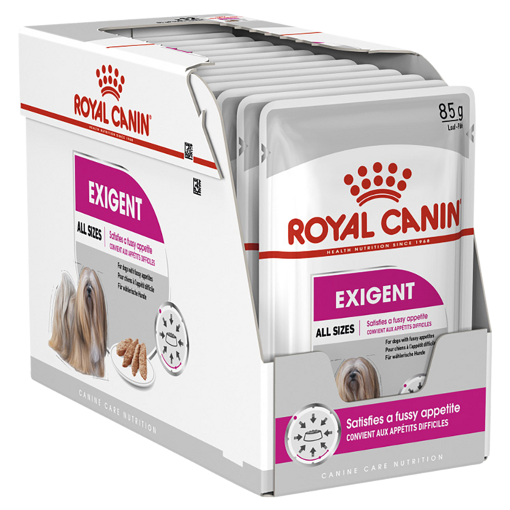 Royal Canin Exigent Adult är ett välbalanserat, näringsriktigt våtfoder som är anpassat för mycket kräsna hundar. Smakrikt innehåll med utvalda ingredienser för att passa den kräsna hunden.