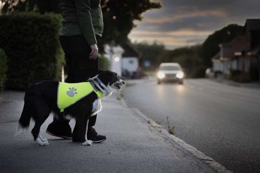 Säkerhetsväst med reflekterande detaljer som gör din hund extra synlig i mörker.