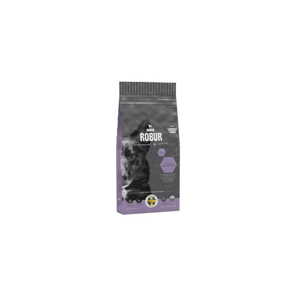 Detta helfoder, lagat på ett vetefritt recept, har ett högt energiinnehåll och är naturligt optimerat för hundar med en hög aktivitetsnivå och hårt arbetande hundar, valpar och unghundar, dräktiga samt digivande tikar. Den höga energi- och näringstätheten ger sällskapshunden friskhet och vitalitet, utställningshunden en vacker päls samt jakt-, bruks- och draghunden bästa förutsättningar för ett gott samarbete. Bozita Robur Active är berikad med färsk svensk kyckling och smaksatt med älg - vilket ger utmärkt smak och smältbarhet. Tillskott av glukosamin och kondroitinsulfatsom är en naturlig del av en frisk led.
