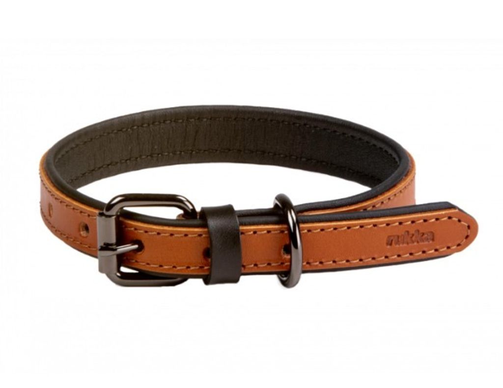 Elegant och tvåfärgat läderhalsband från Rukka. Tillverkat av vegetabiliskt garvat läder. Det mjuka lädret och den lätta fodringen gör att halsbandet både är bekvämt för din hund att ha på sig samtidigt som det är skonsamt mot både päls och hud.