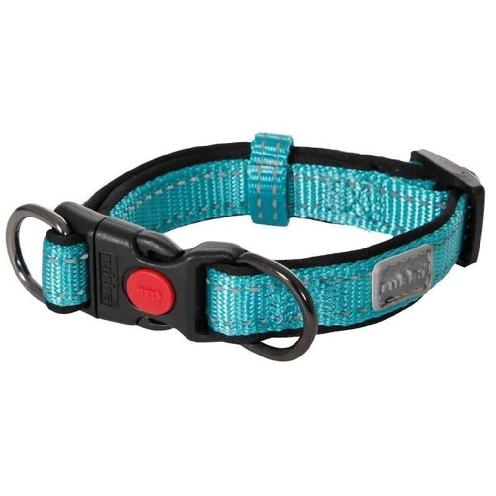 Ett lättviktigt halsband i snygg turkos färg med vaddering som är tillverkat i slitstark nylon. Den mjuka neoprenfodrade vadderingen ger din hund hög komfort även under längre promenader och äventyr. Halsbandet är justerbart vilket gör att du enkelt och snabbt kan justera dess storlek till att passa just din hund helt perfekt. Även perfekt för den växande valpen.