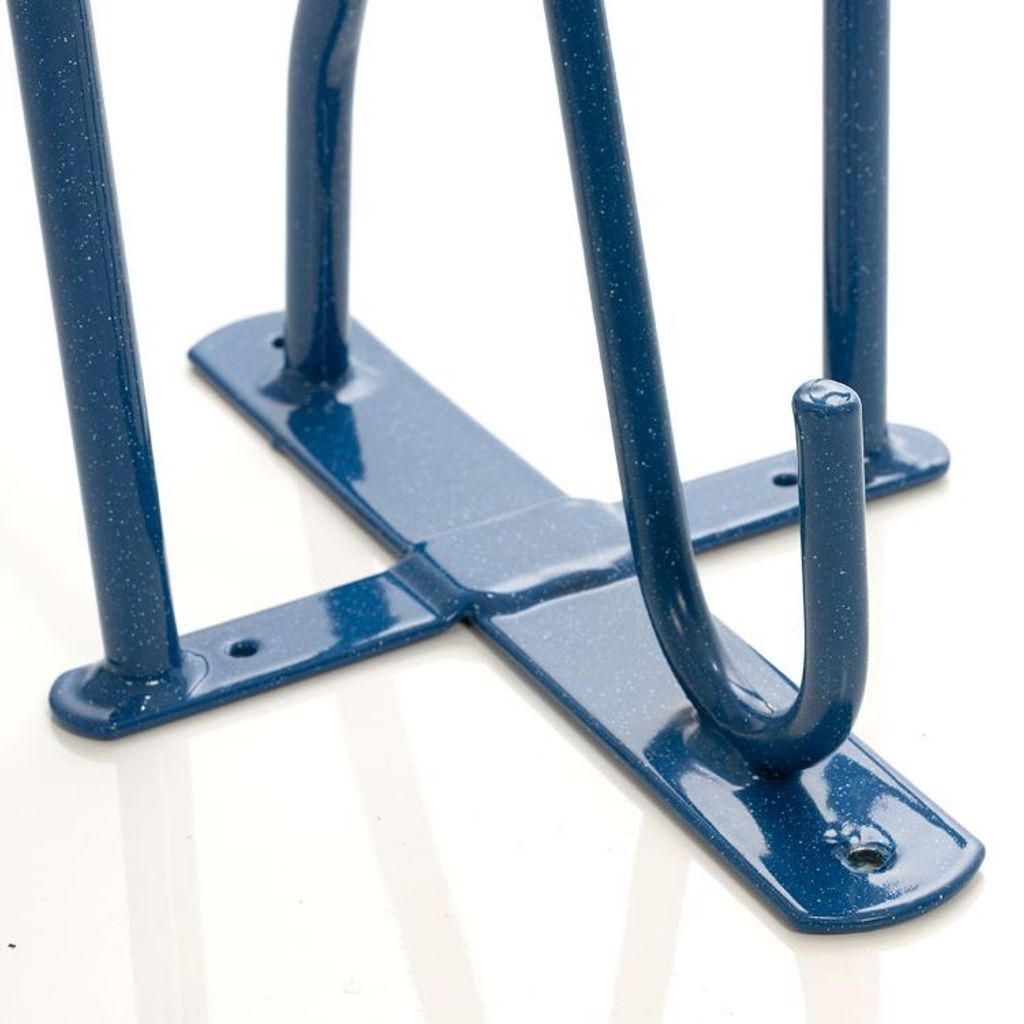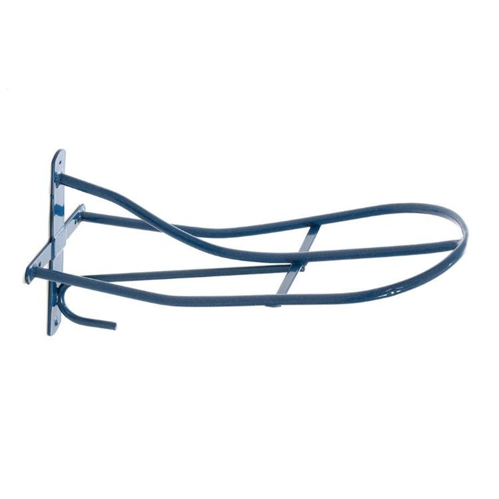Blå sadelhängare som är tillverkad i stabil och slitstark metall.