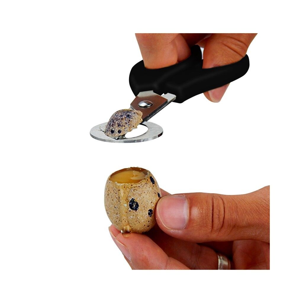 - Skarpa spets och blad som gör det enkelt att punktera och klippa av äggskal.
