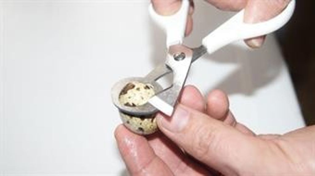 Med denna vakteläggsax det tar bara några sekunder att öppna ett ägg utan att gulan skadas och att inga skalrester följer med.