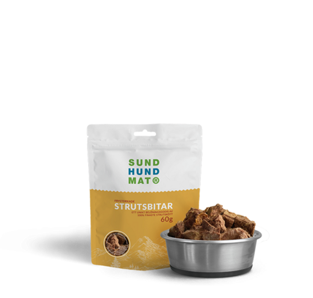 Beskrivning av SHM Frystorkade Strutsbitar 60g