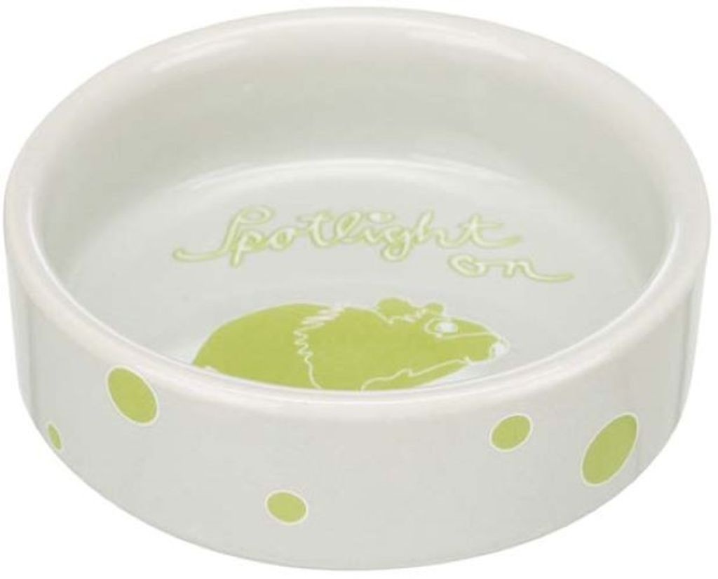 Keramikskål med fint tryck i botten och på kanterna av skålen. De lekfulla färgerna och skålens design gör att den passar i alla smådjursburar eller inhägnader.