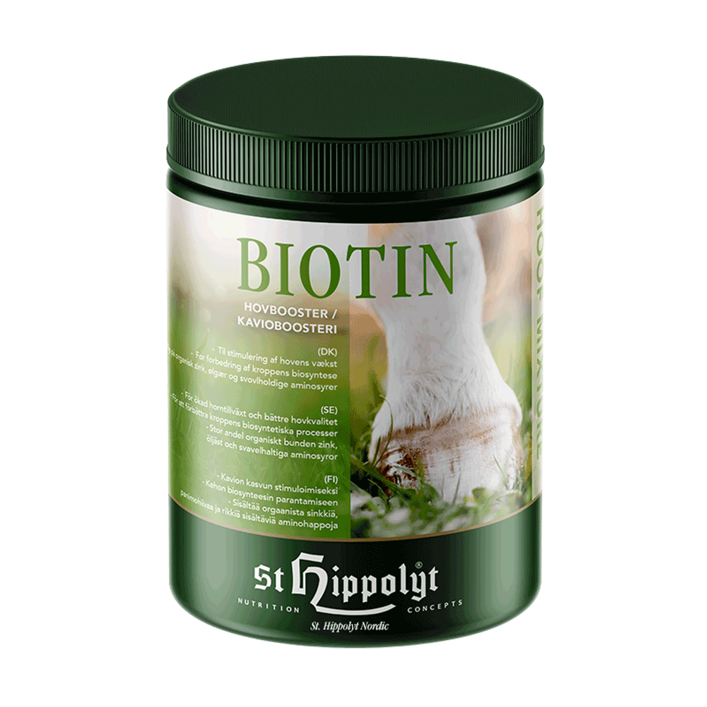 Biotin är en nyckelvitamin för att främja huvudnäriingsämnenas ämnesomsättning och kan i många fall ge en tydlig förbättring av hovhornets kvalitet.