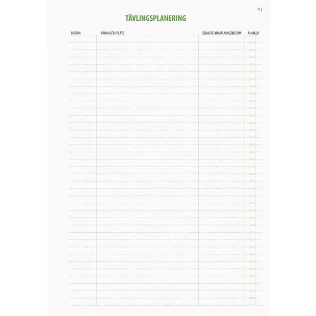 - Tränings/tävlingsdagbok
