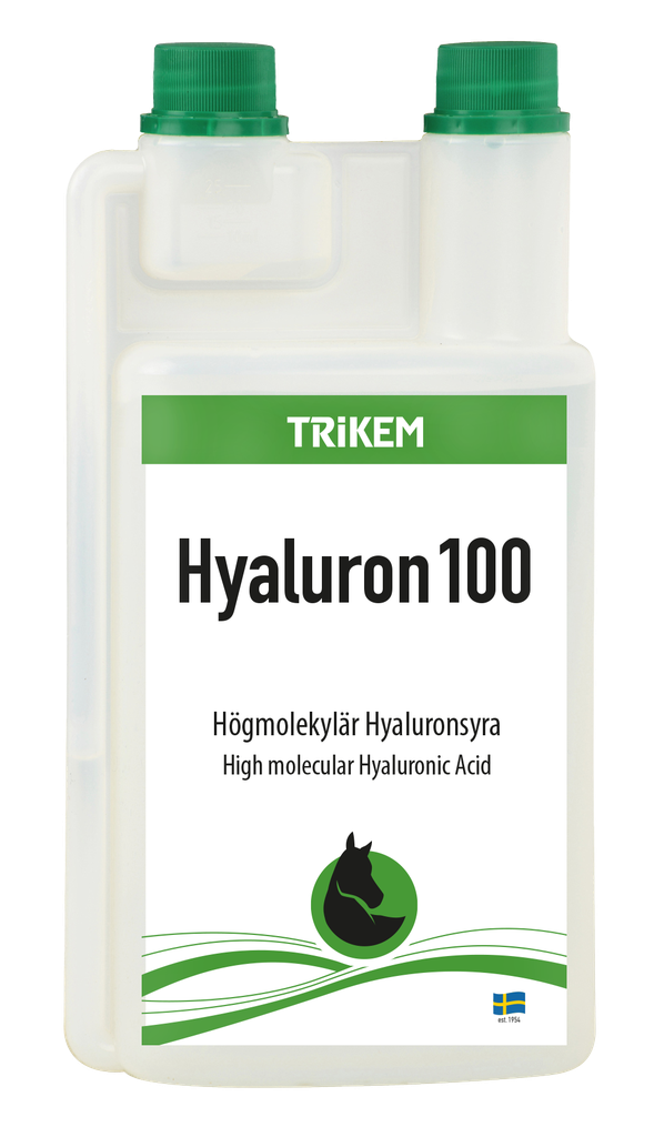 Hyaluronsyra är ett kroppseget ämne som ingår i hästens ledvätska. Hyaluronsyrans förmåga att dra till sig vatten och därmed öka ledvätskans viskositet bidrar till att öka ledernas stötdämpning och förbättra ledfunktionen. Från 12-14 års ålder producerar hästar mindre mängd kroppsegna ämnen, vilket gör att ledvätskans stötdämpande förmåga kan avta hos den äldre hästen. Hyaluron 100 kan med fördel ges till hästar som utsätts för hög belastning, i form av träning eller tävling, då den kroppsegna hyaluronsyran inte hinner tillverkas i den takt det förbrukas.