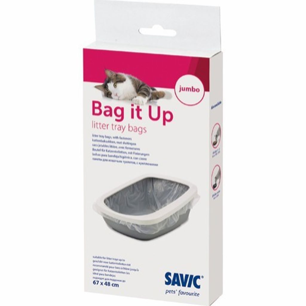 Med Savic Bag it Up Litter Tray Bags är det hur enkelt som helst att städa kattoaletten. Du bara lägger i en påse i kattlådans botten och drar påsens kanter över kanterna på lådan. Om det behövs, fäster du påsen vid kanten. Sedan fyller du på ströet. När det är dags att städa ur kattlådan och byta all sand, tar du bara bort påsen och knyter ihop den och kastar den i soporna. Till slut sätter du i en ny påse, fyller på sand och så är det färdigt!
