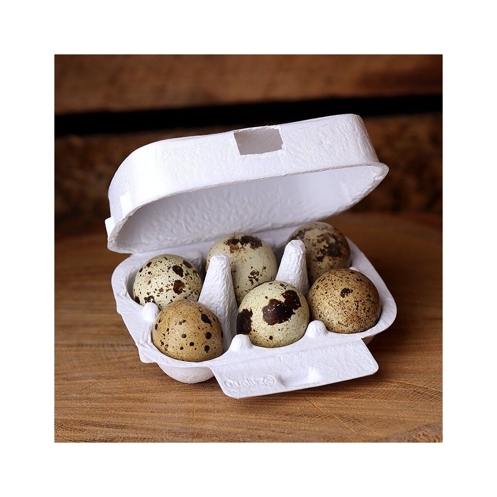 Vakteläggskartongen av papp rymmer 6 vaktelägg.