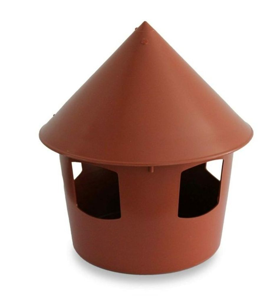 En praktisk foder- eller vattenautomat för duvor som rymmer cirka 2 liter. Konstruktionen är utformad för att hålla fodret eller vattnet skyddat inne i automaten, vilket minskar risken för nedsmutsning. Tack vare den smarta formen finns det få ytor där smuts kan ansamlas, vilket gör den både hygienisk och enkel att hålla ren.