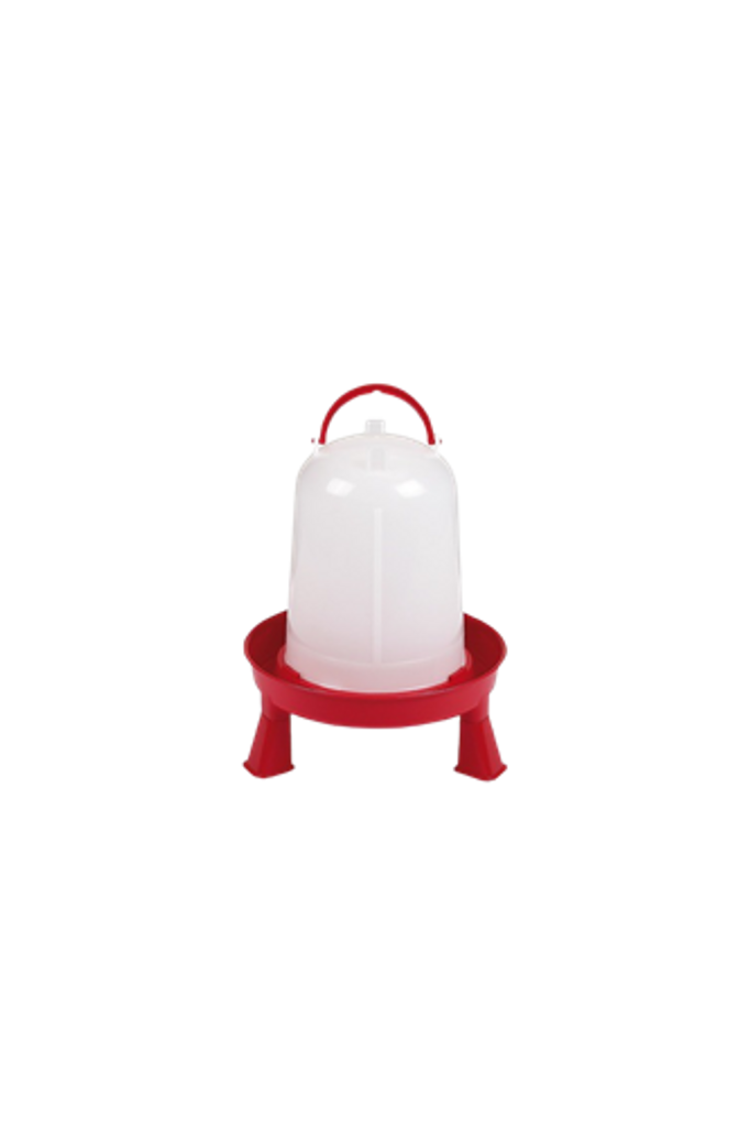 Klassisk rödvit vattenautomat på ben som förhindrar skräp från att nå vattnet.