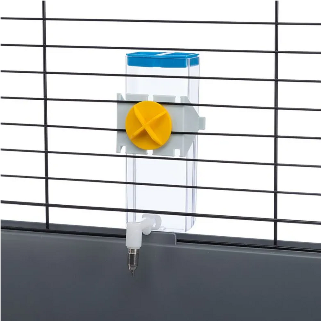 Vattenflaska från Ferplast med sugproppar som fästs på buren eller på släta ytor till din kanin, råtta, marsvin eller hamster, fästena passar alla gallerburar.