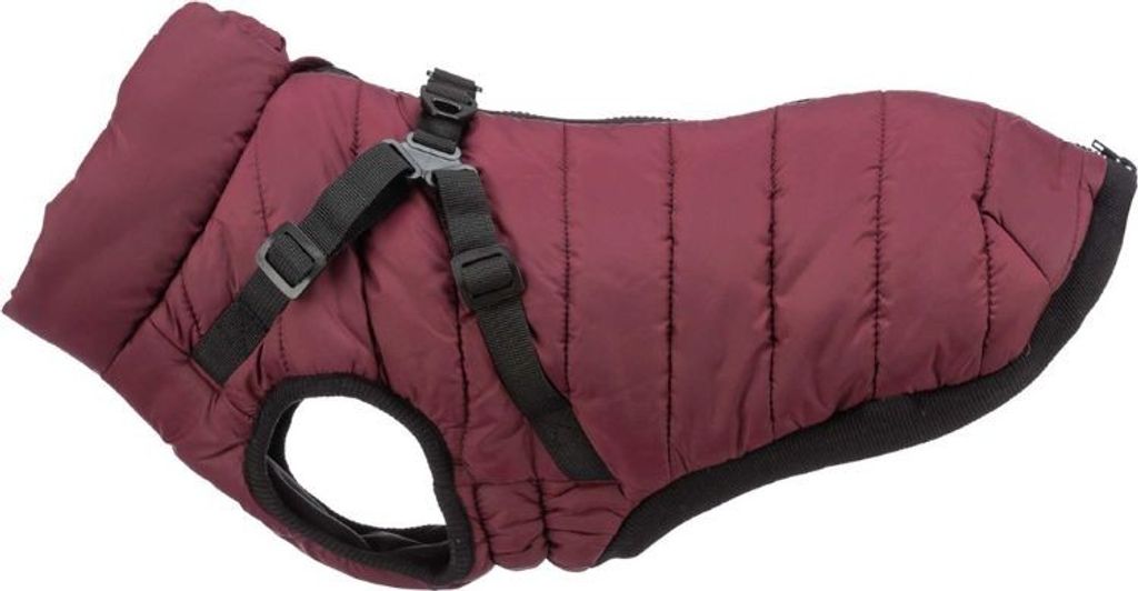 Vadderad hundjacka med inbyggd sele. Den mjuka stoppningen (200g/m²) ger extra bra isolering under även de kallaste dagarna, samtidigt som det yttre materialet gör att regn och snö snabbt och enkelt rinner av.