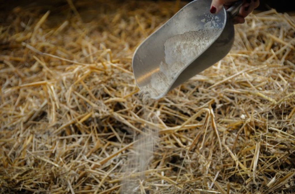 Vulkamin är ett naturligt antiseptiskt stenmjöl som används i stall.